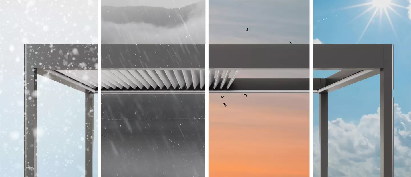 Bioklimatik Pergola, çeşitli hava koşullarına uyum sağlayabilen esnek bir tasarıma sahiptir. Bu özellik, kullanıcının tercihine göre güneşlenme, havalandırma ve tam izolasyon gibi seçenekler arasında istenen açıklık miktarını ayarlamasına olanak tanır. Albert Genau Bioklimatik Pergola'nın kullanıcı dostu tasarımı, herhangi bir mevsim veya hava durumu koşulunda maksimum konfor ve esneklik sunar.